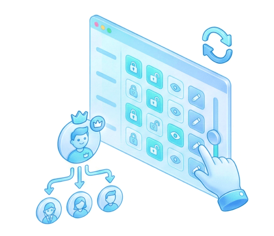 支持创建自定义角色,基于角色继承与一键复制功能,通过权限矩阵全局视图快速配置,权限调整实时生效,满足企业动态业务扩展需求。