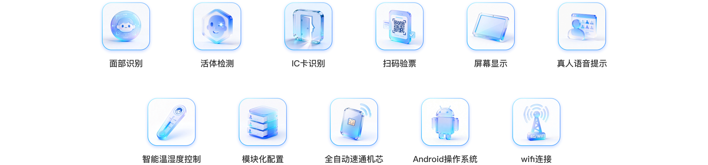 读卡距离:5 - 50cm,通行速度:30-35人/分钟,(常闭模式),通行方向:支持单向或双向控制