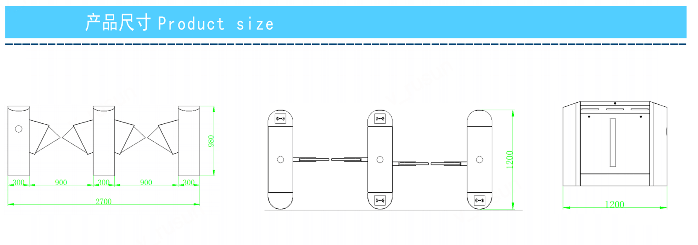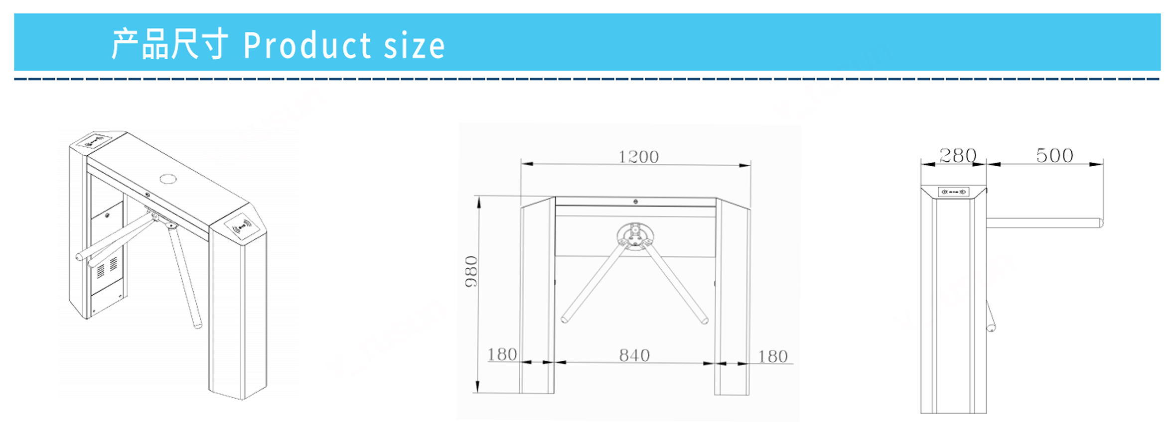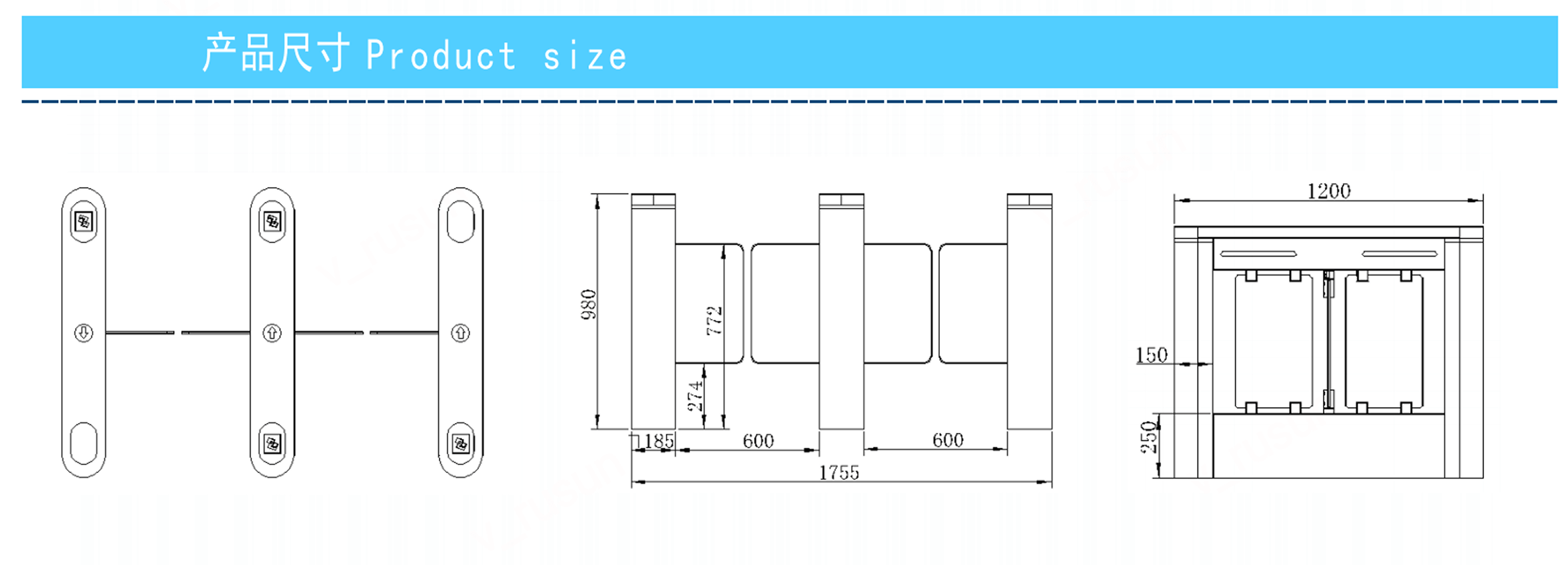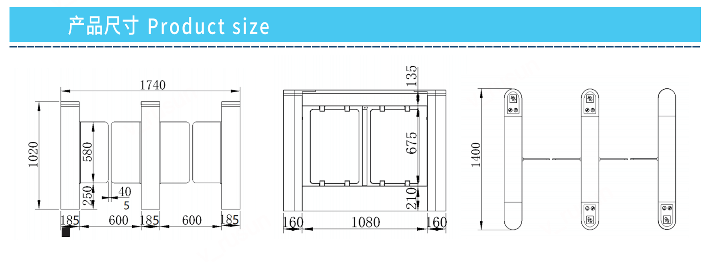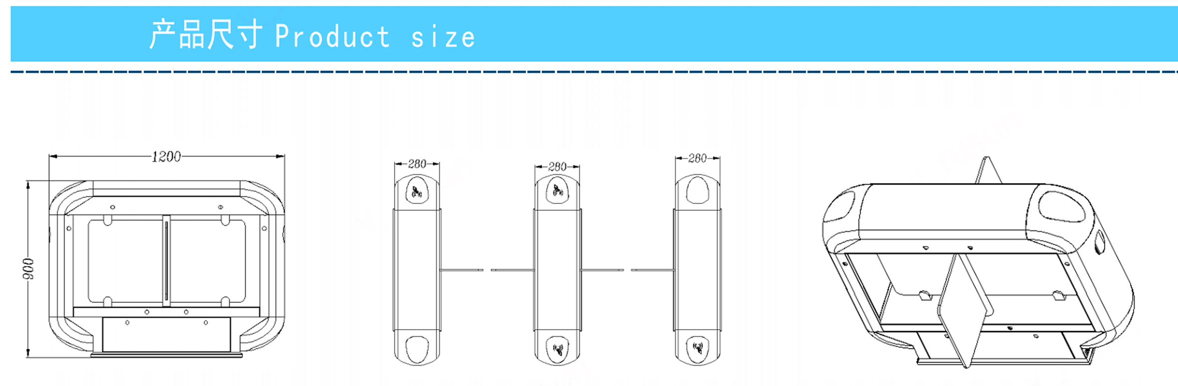 设计合理可靠,噪声小,运行平稳,使用寿命长 摆臂打开速度可进行设置,满足不同场合的要求。 具有故障自检及报警提示功能,方便用户的维护及使用。 防水、防晒、耐寒、耐高温。 采用了独特的传动系统,使闸机在零位锁定、解锁更加准确、可靠。 可与其他类型通道产品配合使用。