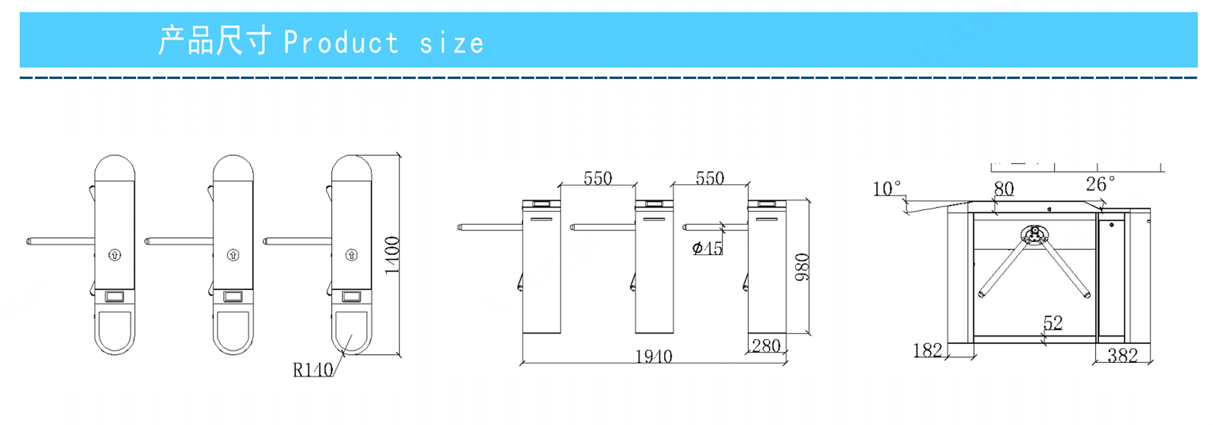 反逆转装置功能阻止旋转单元进行与原始方向相反的旋转 统一标准的对外电气接口,可与多种读卡器相挂接,并可通过管理计算机实现远程控制与管理 整个系统运行平稳、噪音小 具有双向通行功能,闸杆转向分双向和单向: 行人读有效卡后,若在系统规定时间内未通行时,系统将自动取消行人此次通行权限 可外接双向流量计数器,可显示出通行方向的通行人数;