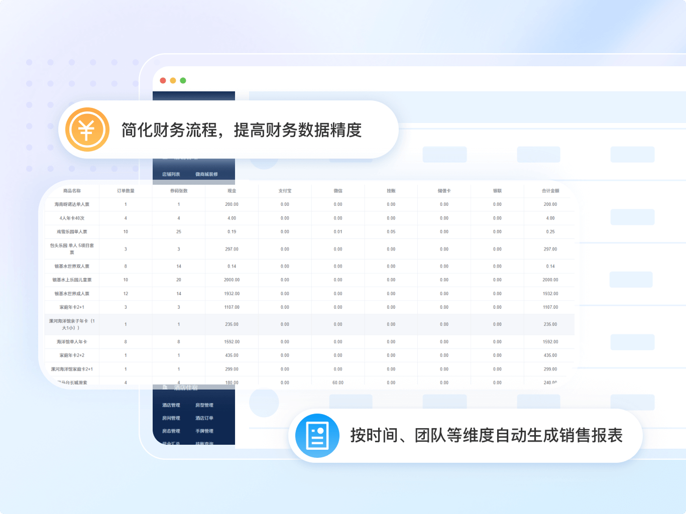 按时间、团队等维度自动生成销售报表,清晰区分线上与线下订单,提供可定制的数据汇总与分析功能。