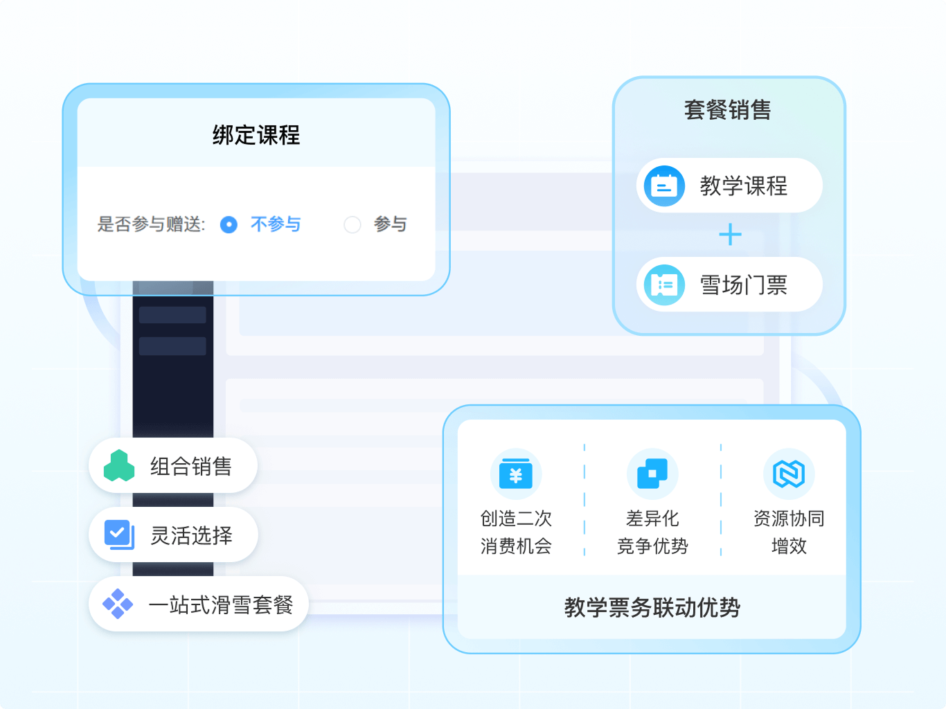 单次卡,季卡多种选择,根据自身雪场特色搭配不同套餐业务
